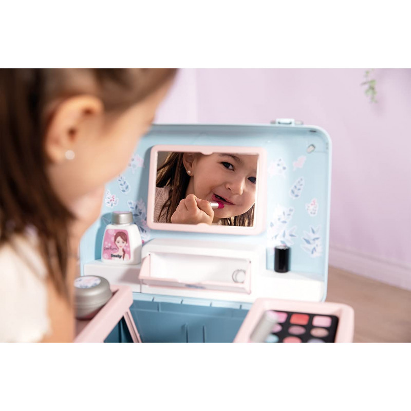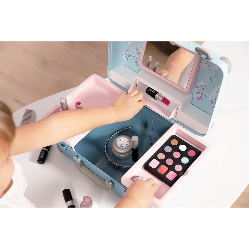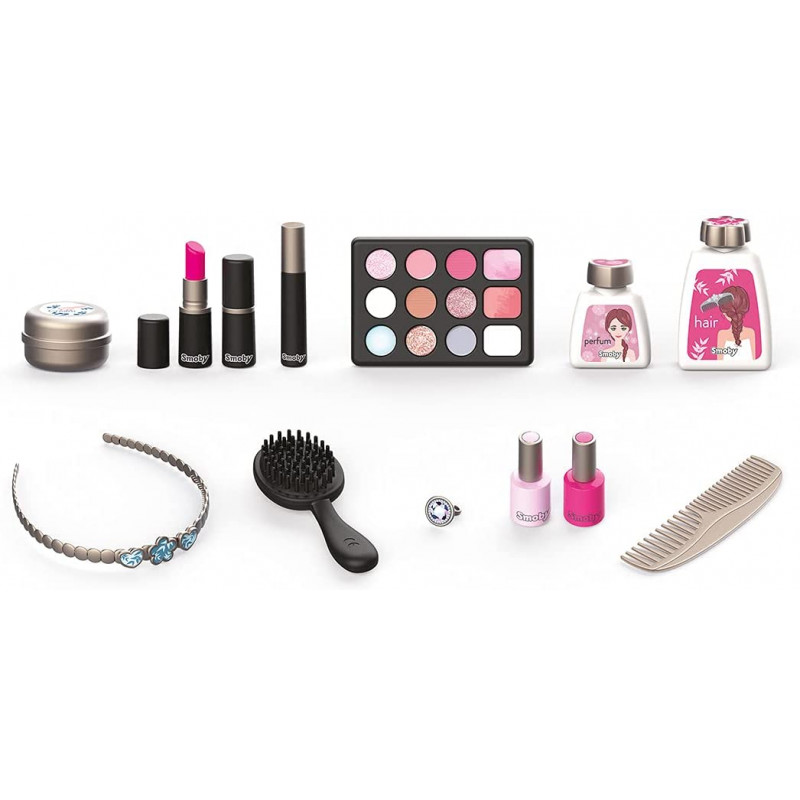 My Beauty Vanity Smoby est le coffret fantastique qui contient 3 univers beauté : nail art, maquillage et coiffure 13 accessoires inclus, dont : pinceau, peigne, vernis à ongles, rouges à lèvres et palettes de fards à paupières. Ce ne sont pas de vrais trucs. équipé d'une poignée confortable pour qu'il puisse toujours être emporté avec vous.